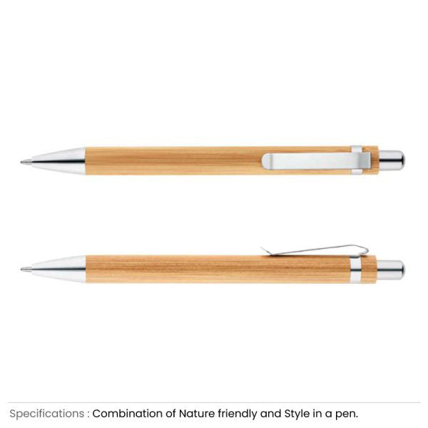 أقلام الخيزران الصديقة للبيئة لدينا هي ببساطة فريدة وأنيقة. لقد جمعت بين الفضة في الأعلى وفي الأسفل. ولها عملية الضغط على الزر بالأعلى. هذه الأقلام مصنوعة بعناية من الخيزران من مصادر أخلاقية. دع الجمال الطبيعي للخيزران يلهم إبداعك.