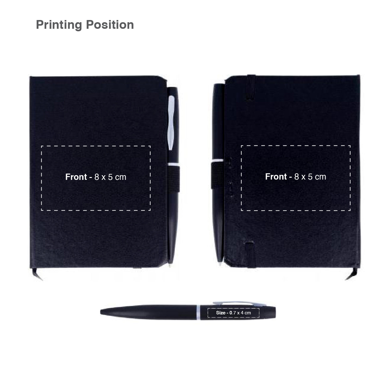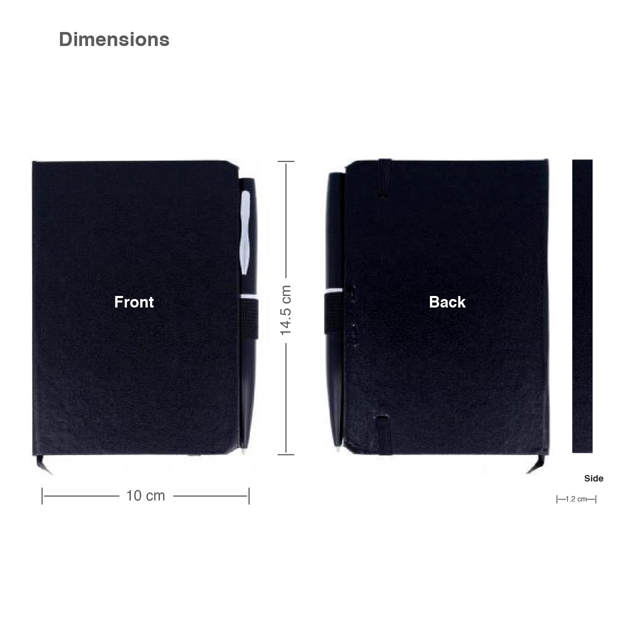 دفتر بحجم A6 مع قلم. بغطاء بي يو صلب.